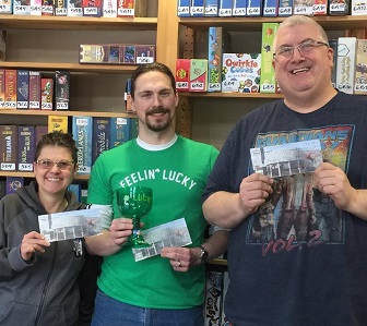 The EBGL's second annual Luck Fest Event was held on Saturday, February 17th! Congratulations to the first place winner (and 2018's Luckiest Player Alive): Mike I(center)! Second place was Tammy L(left) and third place was Rob D(right). Also, congrats to Edward K for winning the totally random rare achievement and for Shauna D for winning the Unluckiest player alive prize!
