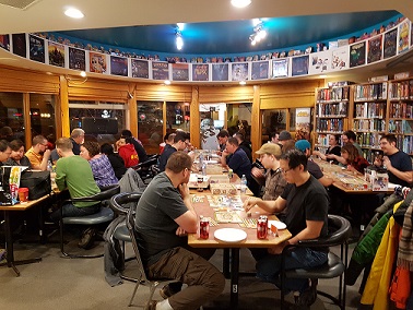 Thanks to everyone (especially Mission: Fun & Games) for being so accommodating. We had sufficient tables & chairs, copies of the game, plenty of snacks, and lot of fun!