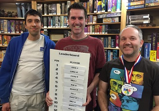 We had a full 16 player roster for our 2016 Point Pentathlon event on Saturday, February 27th. After about 11 hours and playing through five different point based games, the final weighted scores resulted in the following standings:
